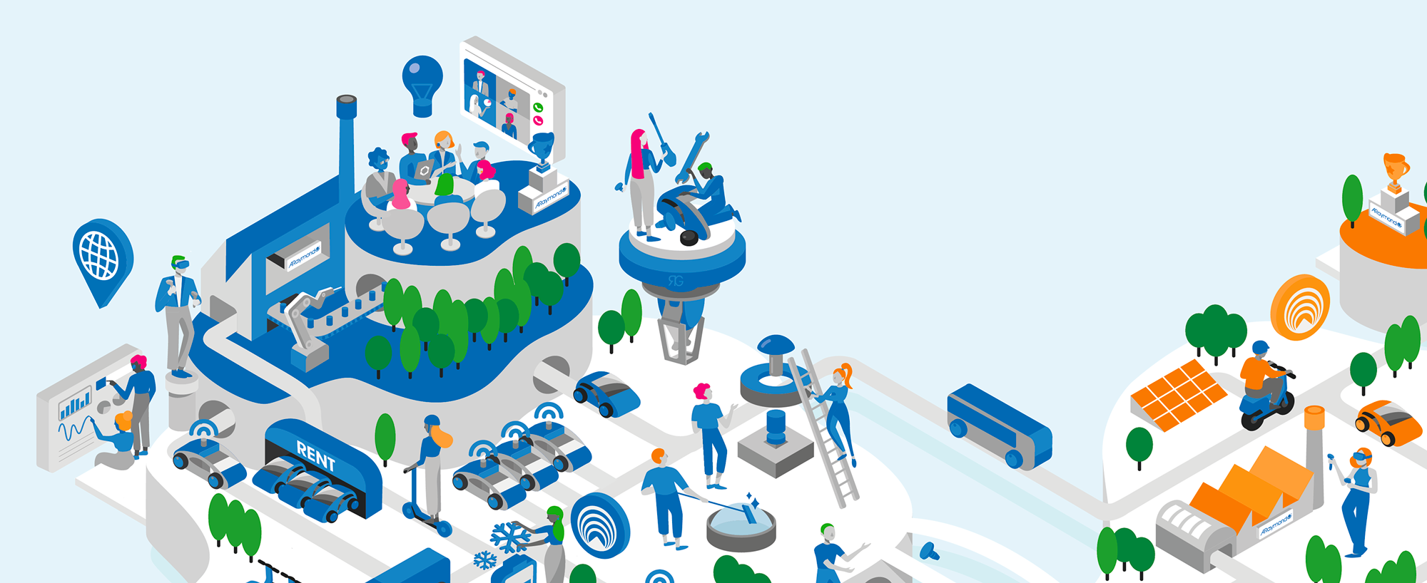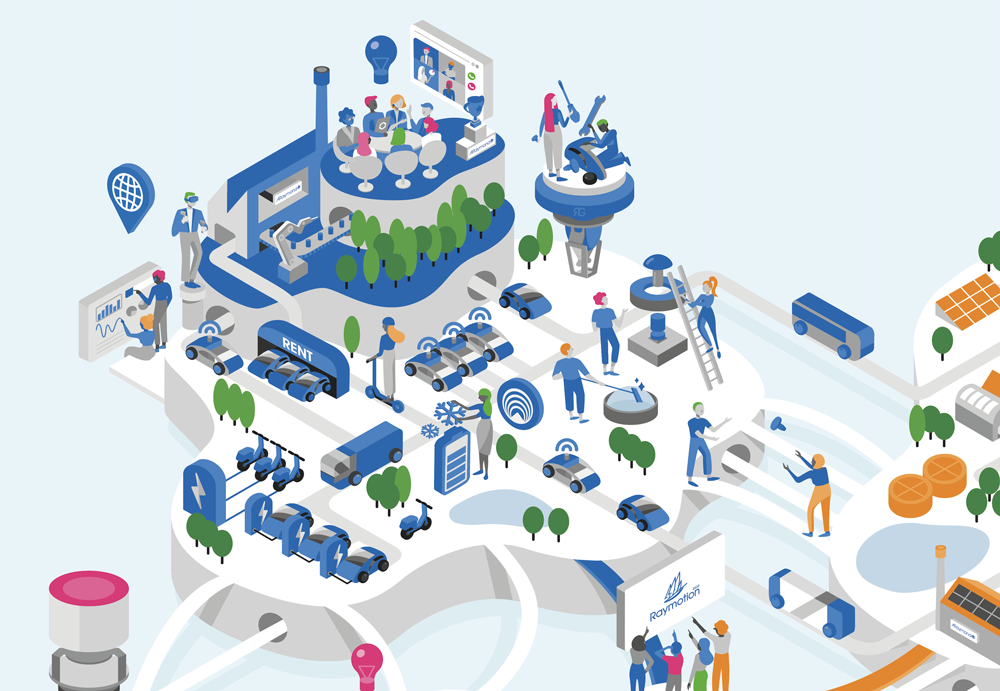 The purpose of this illustration was to represent in one image the corporate vision of ARaymond in 2030. Raymotion is the strategic plan for the ARaymond network. It outlines their ambitions, defines their performance goals as a guide.